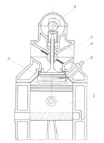 Section through compression combustion engine. Part of patent - United Distribution Internal Combustion Engine. |
