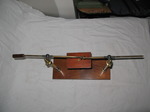 |    Click to enlarge | Description L'excitateur universel est constitué de deux tiges en verre verticales servant de support. Deux tiges en laiton avec des manches en bois sont articulés à leurs extrémités. Ces tiges se terminent par des boules en laiton. Il manque un des manches en bois. Entre les deux tiges de verre se trouve un plateau en bois réglable en hauteur grâce à une vis. Les tiges ainsi que le plateau sont fixés sur un socle en bois. | ||||||
