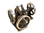 Differential gear mechanism with spur gears transmite the drive rotation movement to two driven rotation movement. |