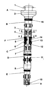 Overview with partial cross section through modular honing tool. Part of patent - Modular Honing Tool.