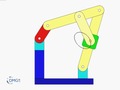 The interactive animation was generated for the geometrical dimensions: l1 = 13 mm, l2 = 46 mm, l2´ = 28 mm, l3 = 50 mm,  l4 = 23 mm,  x = 37 mm, y = 24 mm. |