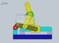 The interactive animation was generated for the geometrical dimensions: l1 =  16 mm, l2 = 80 mm, l2´ = 32 mm, l3 = 8 mm, l4 = 56 mm, y = -6 mm, α = 105°. |