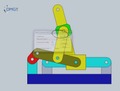 The interactive animation was generated for the geometrical dimensions: l1 =  16 mm, l2 = 80 mm, l2´ = 42 mm, l3 = 8 mm, l4 = 56 mm, y = -6 mm, α = 105°. |