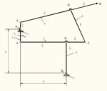 Function The mechanism contains a RRR kinematic chain connected in parallel with a four bar linkage. The kinematic chain RRR´s joints are connected with the crank and the coupler of the four bar linkage. By means of changing the geometrical lengths of the mechanism´s links, the coupler point M describes a range of coupler curves.