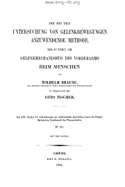Abhandlungen der Mathematisch-Physischen Klasse der Königlich-Sächsischen Gesellschaft der Wissenschaften: Die bei der Untersuchung von Gelenkbewegungen anzuwendende Methode ; erläutert am Gelenkmechanismus des Vorderarms beim Menschen |