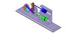 ISO-view showing a mechanism named mechanism with slides and levers of the piston machine with an adjustable stroke of one of the two pistons in position P17 |